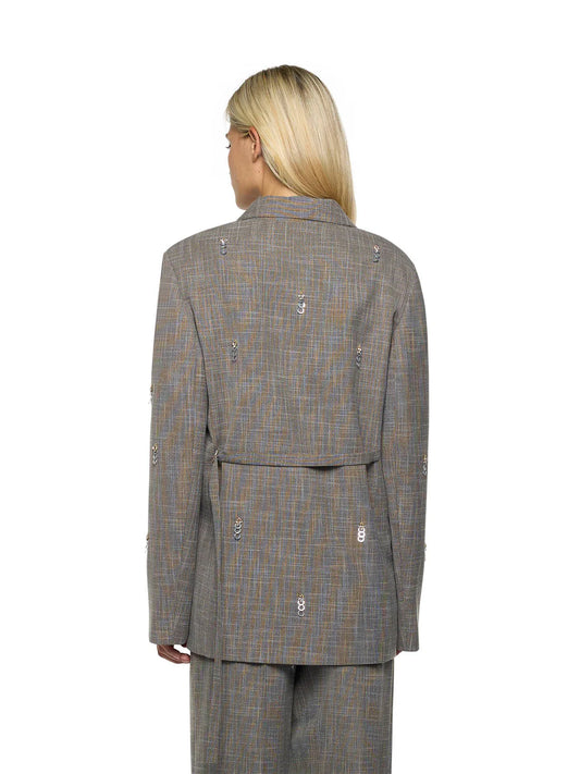 SIMONA CORSELLINI Oversized blazer with welt pockets and back strap in textured woven fabric