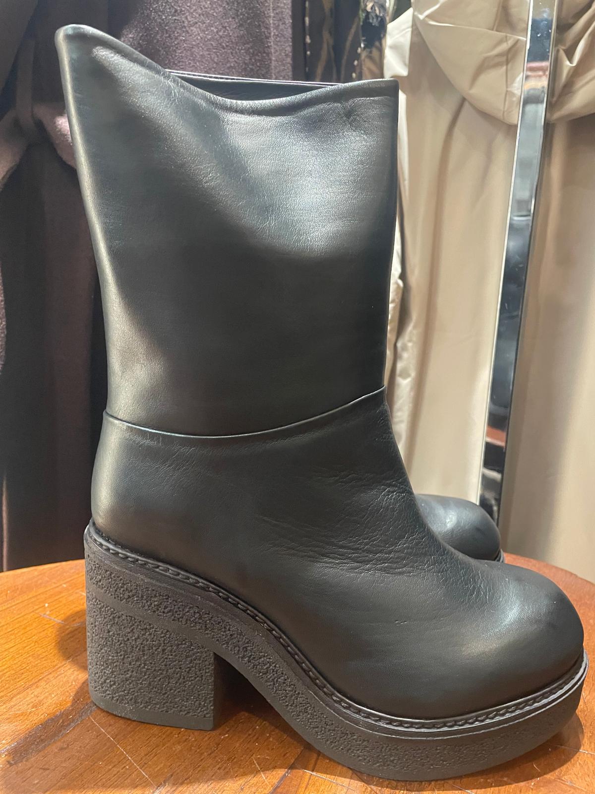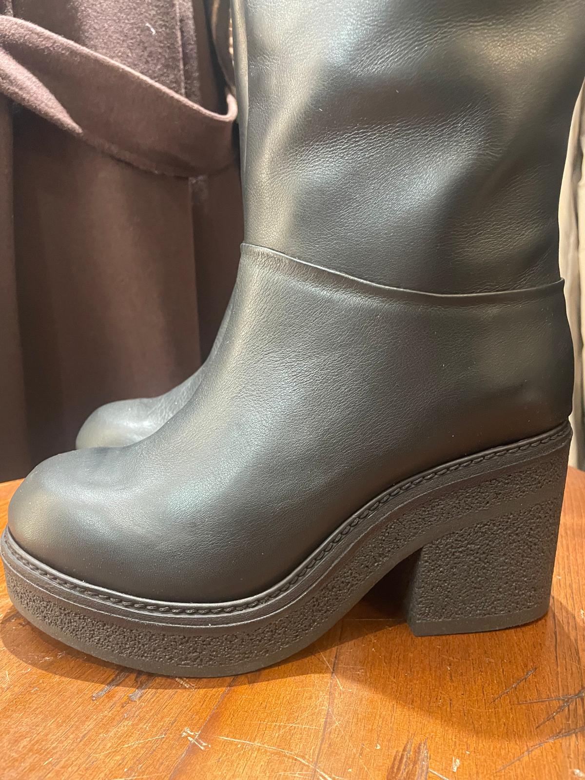 Tronchetto in vitello nero, taglio basso, para + tacco in gomma h. 7, punta tonda